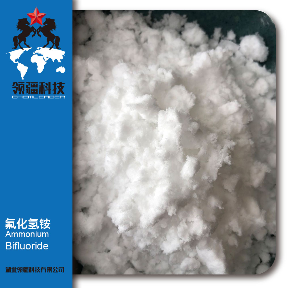 氟化氢铵分子式为NH4HF2,其水溶液显弱酸性,可以溶解玻璃微溶于醇,极易溶于冷水,而且非常容易潮解.经过我公司多年生产氟化氢铵经验,总结出了一套完整的防结块氢氟酸-液氨法生产工艺,目前生产的氟化氢铵既不结块,易溶于水,大量供应铝型材表面处理,客户遍及全国各地,并且常年出口海外,各种资质齐全!我们工厂位于中国文化名城之一的荆州古城,在九省通衢的武汉市吴家山物流基地旁设有仓库,可以快速发往全国各地。运输周期短,运费便宜!